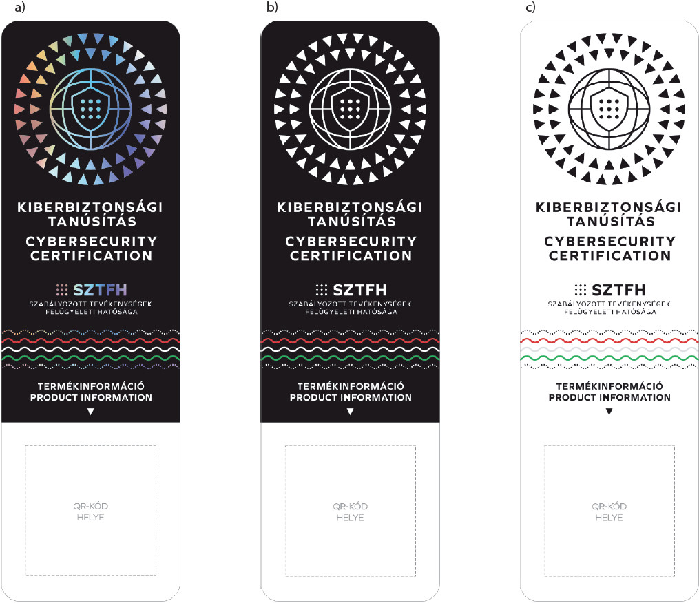 (1a)16 A Kiberbiztonsági tv. szerinti nemzeti megfelelőségi nyilatkozattal vagy nemzeti kiberbiztonsági tanúsítvánnyal rendelkező IKT-terméken, IKT-szolgáltatáson vagy IKT-folyamatban az 1. melléklet szerinti megfelelőségi jelölést kell elhelyezni. Az adott IKT-termék, IKT-szolgáltatás vagy IKT-folyamat jellegétől függően a tanúsító hatóság a Kiberbiztonsági tv. 48. § (1) bekezdése szerinti nyilvántartásba vételről szóló határozata határozza meg, hogy az 1. melléklet 1–4. pontja szerinti megfelelőségi jelölés típusok közül mely típus alkalmazandó, azzal, hogy az 1. melléklet határozatban megjelölt pontján belül az egyes alpontokban szereplő változatok közül az alkalmazni kívánt változatot a gyártó választja ki.